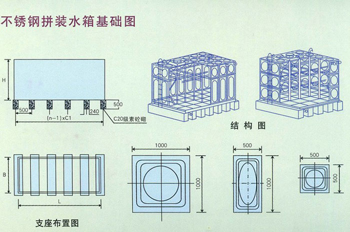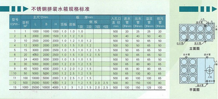 2、不銹鋼消防水箱按規范SS177設計,材質為SUS304,耐腐蝕性強、抗震性能好、便于運輸、無需大型吊裝設備.不同容積均可現場組裝。